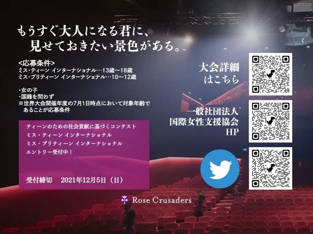 私が理事をつとめる一般社団法人 国際女性支援協会(ブランド名:ローズ・クルセイダーズ)でも、思春期の女の子を応援するコンテスト「ミス・ティーン インターナショナル/ミス・プリティーン インターナショナル」の日本支部を立ち上げました。アメリカを本部とする同コンテストは40年の歴史を持ち、そのワールドワイドな活動で世界から認められています。